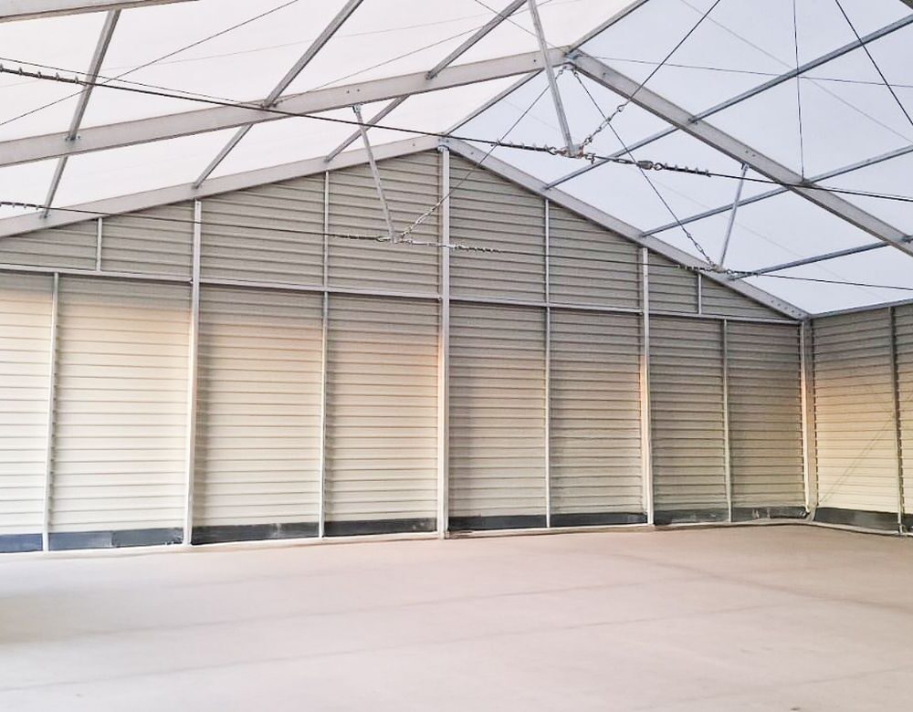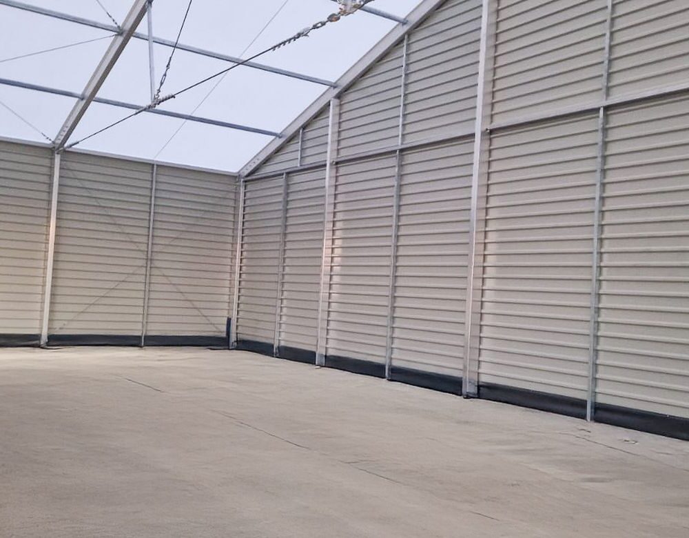 Le hall achevé, d’une dimension de 20x20x5 m, est une installation moderne à usage industriel, fabriquée à l’aide d’une technologie modulaire. La structure avec des subdivisions tous les 5 m est conçue pour une utilisation intensive et une grande résistance aux conditions météorologiques.